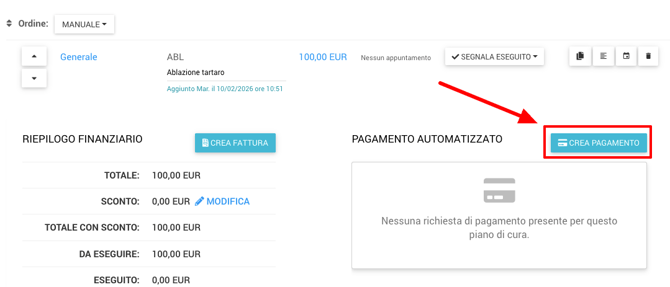 🧾 Creare una Richiesta di Pagamento dal Piano di Cura