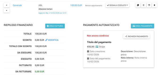 È ideale per medici e segreterie che gestiscono Piani di Cura con pagamenti scaglionati e vogliono evitare riconciliazioni manuali.