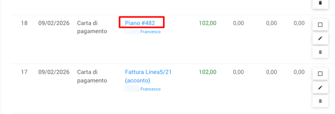 Fino a quando la relativa fattura non sarà emessa, come referenza nella transazione, verrà riportato il numero del piano