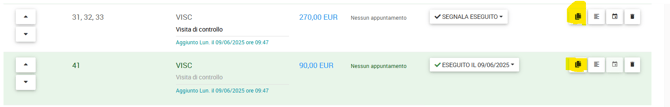 4. Copiare prestazione: una volta aggiunta una prestazione è possibile copiarla più volte nel piano