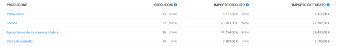 ➡️ Vedrai la tabella con l’elenco delle prestazioni trovate nel periodo selezionato.