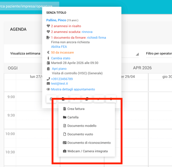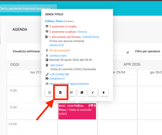 Gestisci i documenti del paziente direttamente dall’agenda in pochi click