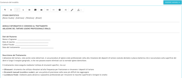 Accedi a una sezione come Documenti, Note o Diagnosi e crea o modifica un contenuto.