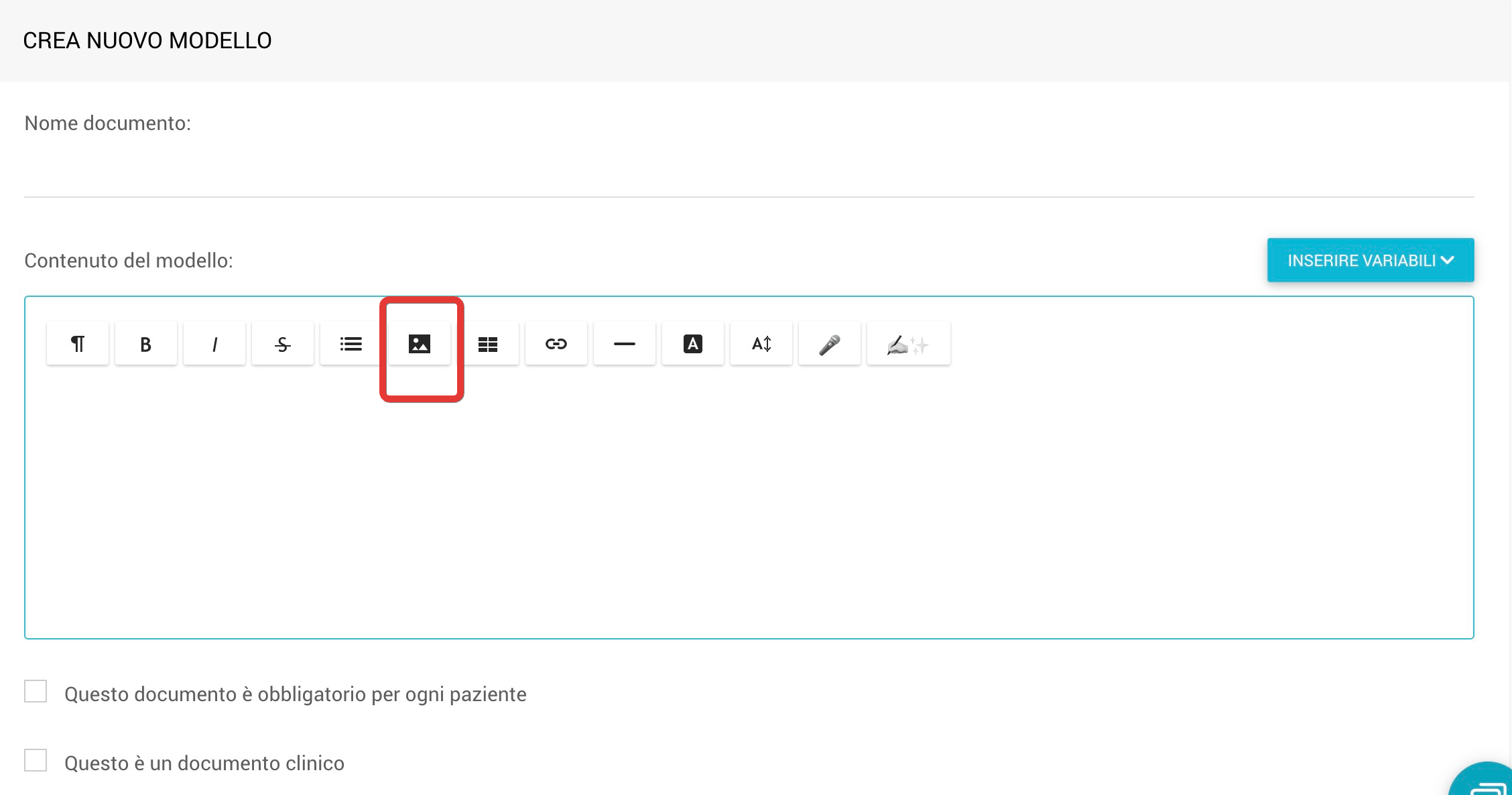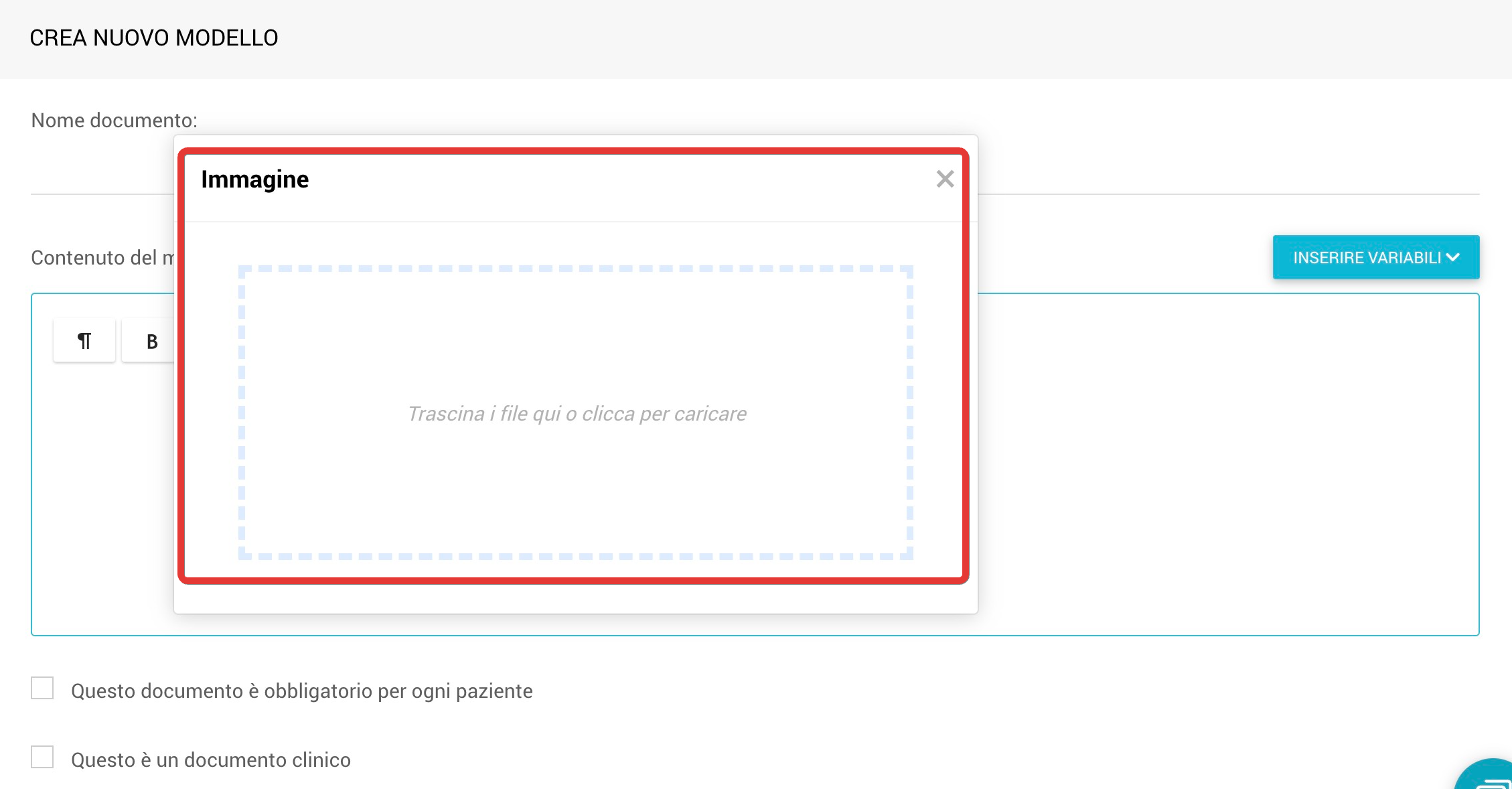 Carica immagini dal computer direttamente nell'editor di testo per arricchire note cliniche, documenti e modelli.