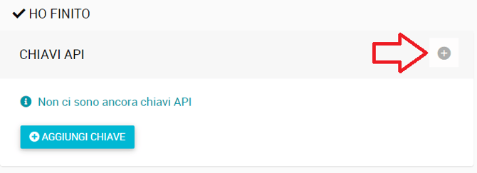 Per creare una nuova chiave API basta cliccare sull’icona +, indicata in figura: