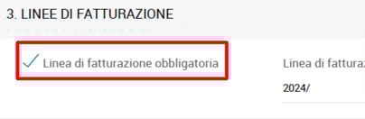 - Nel campo Linea di Fatturazione, seleziona la linea desiderata dal menu a tendina (se hai stabilito già una linea di default, sarà già preselezionata).